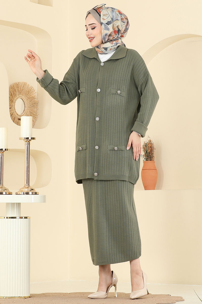 Düğme Detaylı Etekli Takım 2756AYD574 Açık Haki