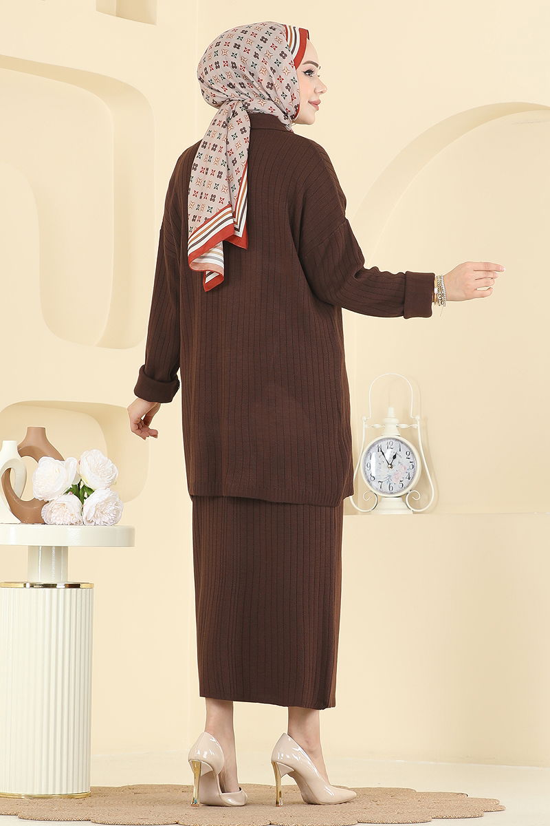 Düğme Detaylı Etekli Takım 2756AYD574 Kahve