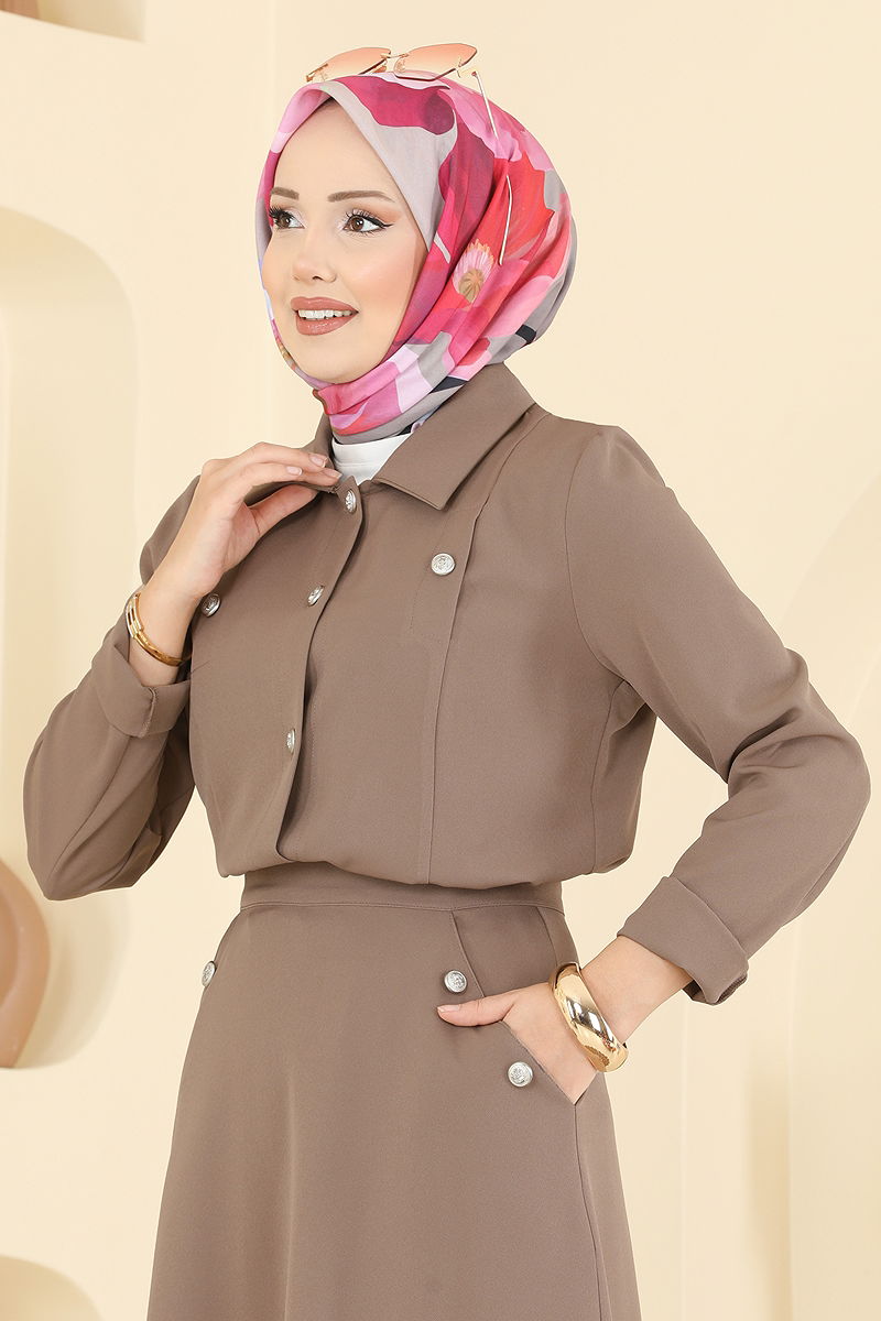 Ürün Özelliği : Yeni sezon tesettür moda ürünüdür. Etekte cep mevcuttur. Ürün Gömlek yakadır. Ürün Önden düğmelidir. Astarsızdır. Etek düğmeleri aksesuardır. Etek beli fermuarlıdır. Konsept fotoğraf çekimlerinden dolayı üründe ton farklılığı olabilir.