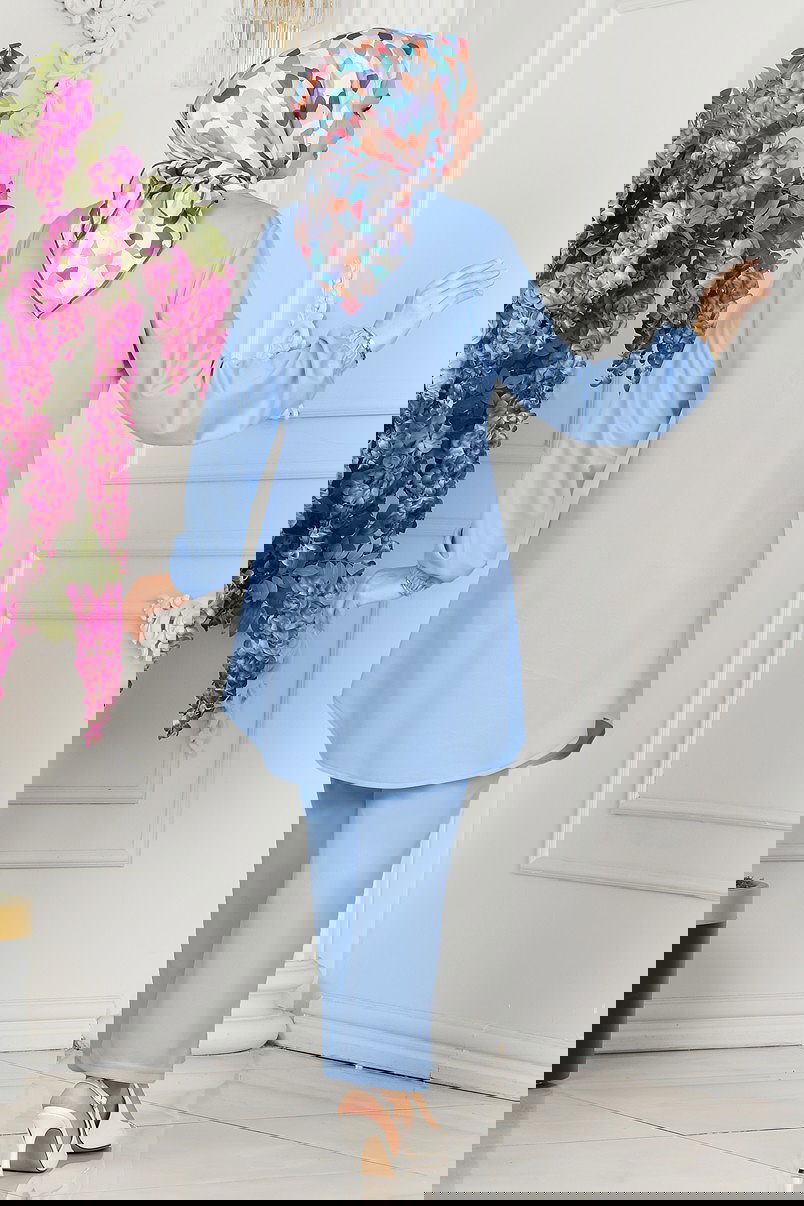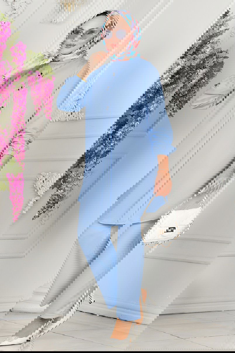 Düğme Detaylı İkili Takım Bebe Mavisi