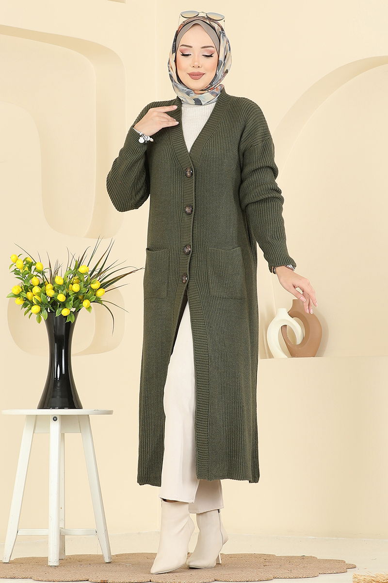 Düğme Detaylı Triko Hırka 2892BRZ597 Haki