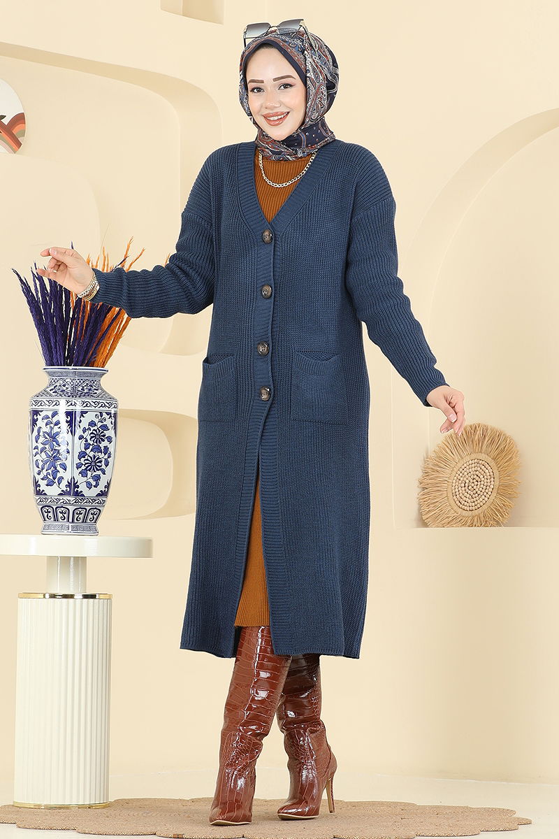 Düğme Detaylı Triko Hırka 2892BRZ597 İndigo