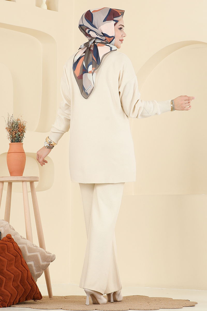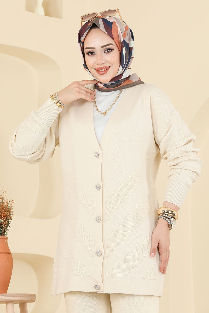 Düğme Detaylı Triko Takım 1314MT581 Taş