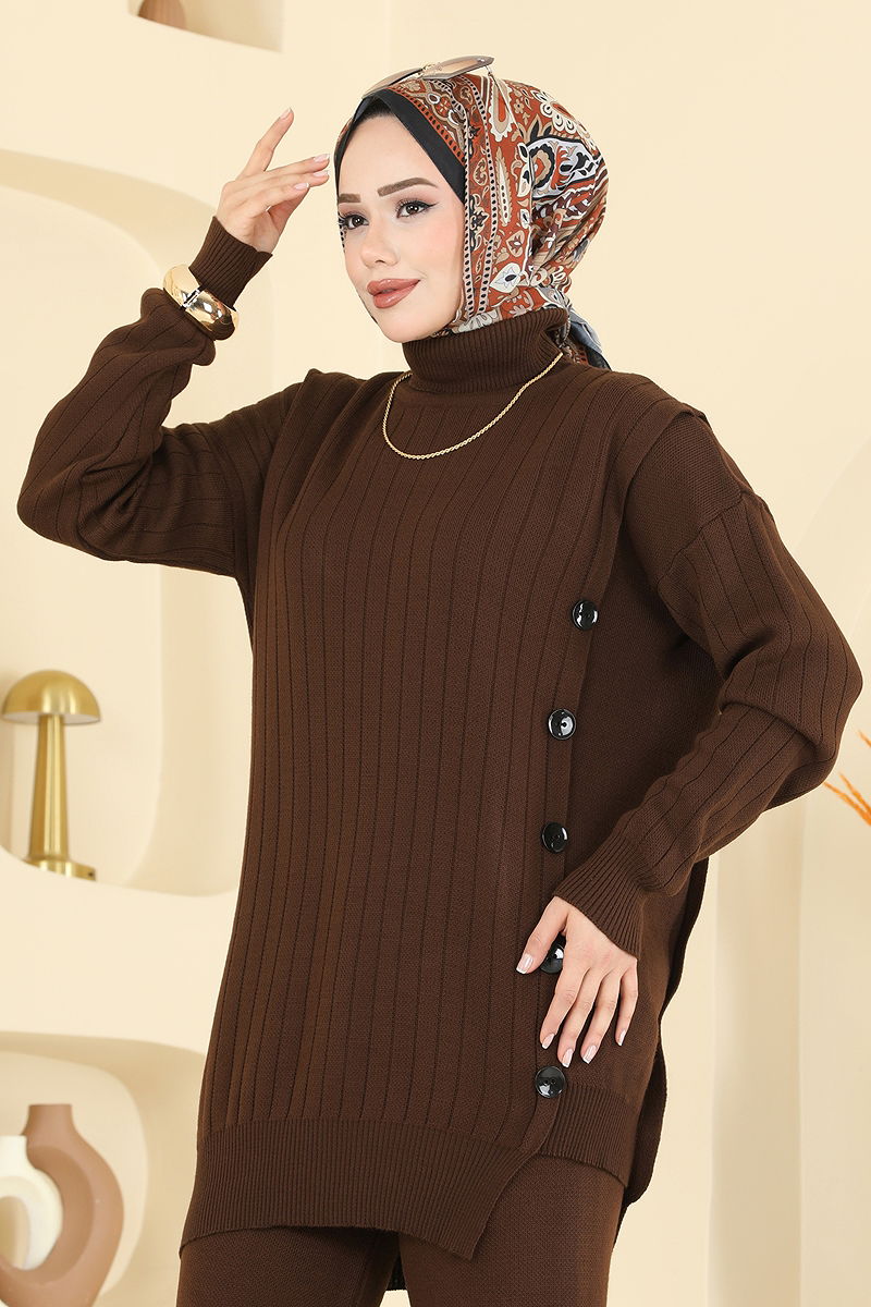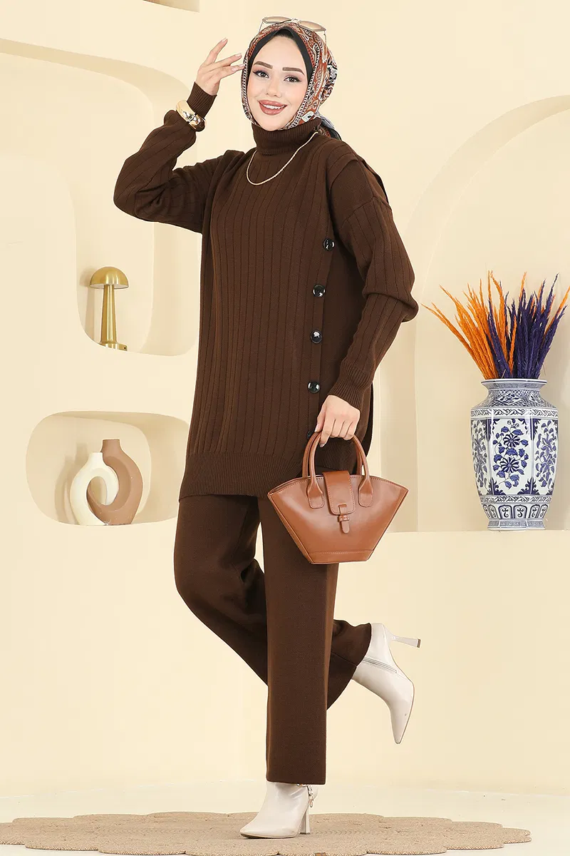 Düğme Detaylı Triko Takım 2775AYD574 Kahve