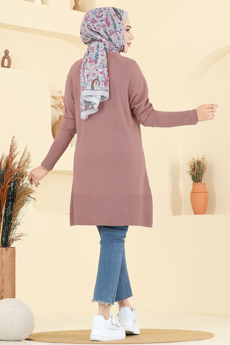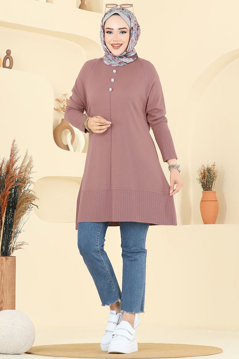 Düğme Detaylı Triko Tunik Gül Kurusu