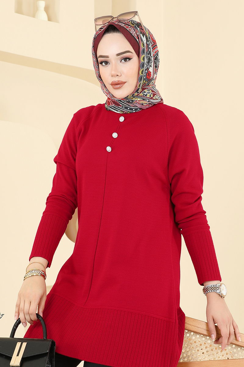 Düğme Detaylı Triko Tunik, özellikle tesettür giyim tercih edenler için ideal bir seçimdir. Sonbahar ve kış mevsiminde rahatlık ve şıklığı bir arada sunan bu tunik, 30 derecede hassas yıkamaya uygundur. Bisiklet yaka ve astarsız tasarımıyla modern bir görünüm sunarken, dekoratif düğmeleri ile stil sahibi bir dokunuş katmaktadır. Triko kumaşı sayesinde hem sıcak tutar hem de konfor sağlar. Standart bedenlerde mevcuttur.