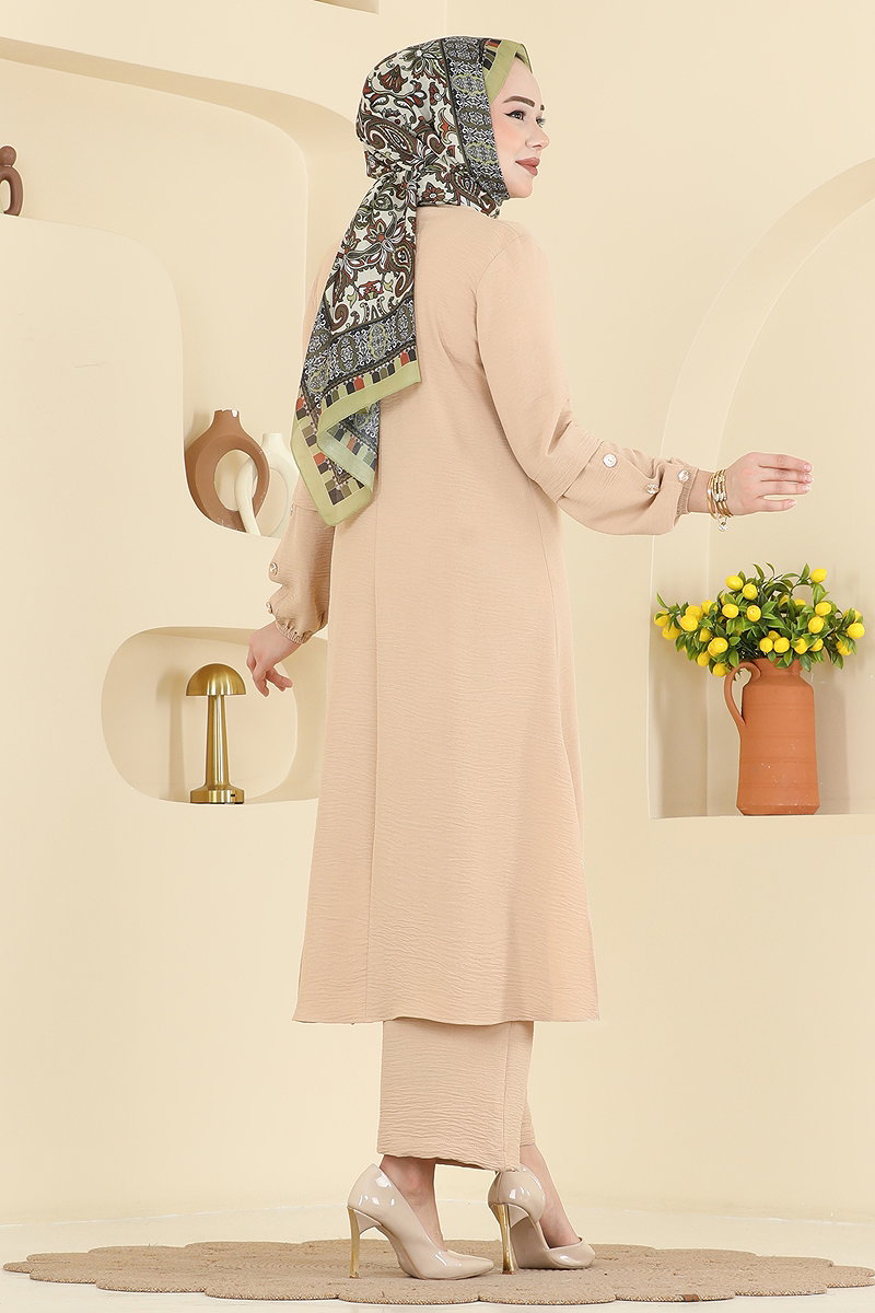 Ürün Özelliği : Yeni sezon tesettür moda ürünüdür. Ürün Bisiklet yakadır. Tunik yandan yırtmaçlıdır.. Düğmeler aksesuardır. Pantolon beli lastiklidir. Manşet lastiklidir.Konsept fotoğraf çekimlerinden dolayı üründe ton farklılığı olabilir.