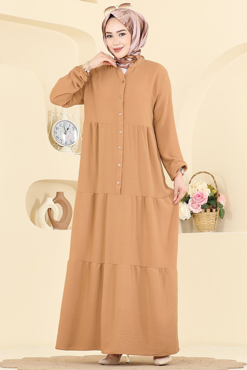 Düğmeli Aerobin Uzun Elbise 4124ZNNK1102 Latte