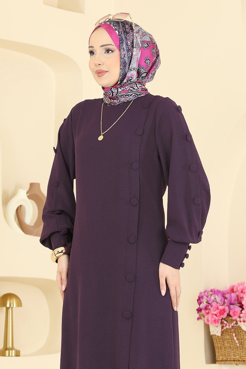 Düğmeli Detaylı 2 li Takım Mürdüm