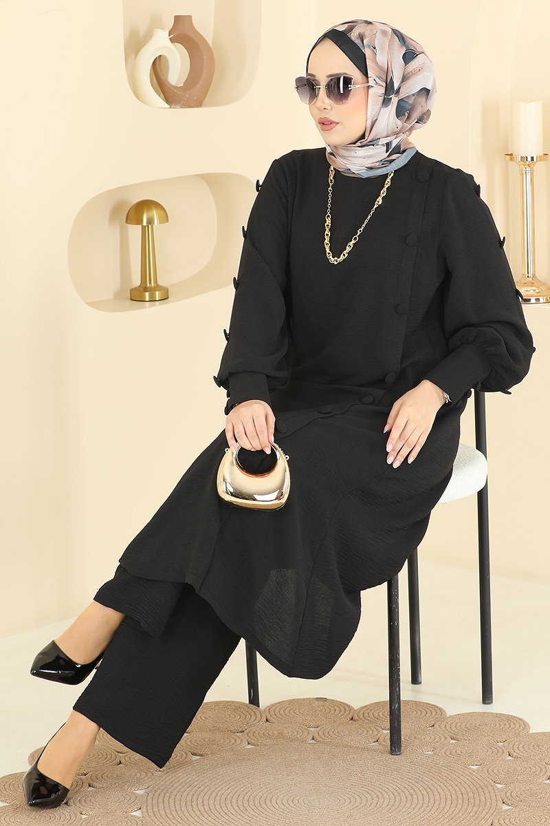 Düğmeli Detaylı 2 li Takım 8317AB368 Siyah