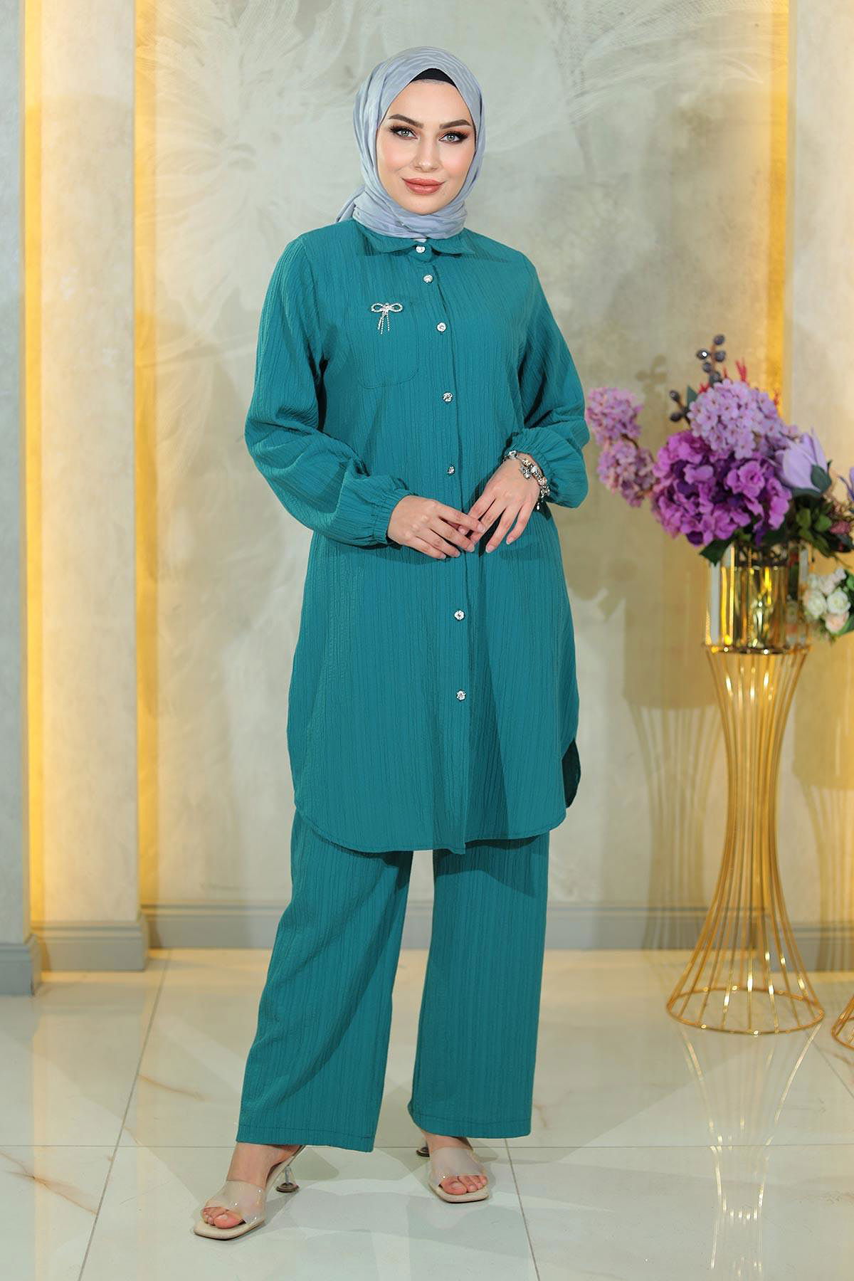 Düğmeli Takım Turkuaz