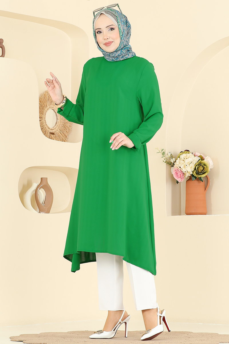 Düz Renk Klasik Tunik Benetton Yeşili