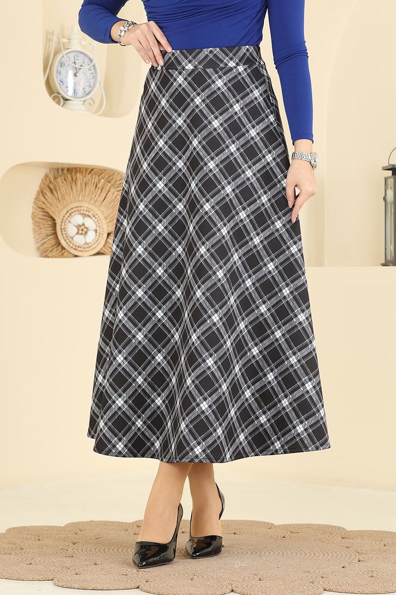 Ekose Desenli Scuba Etek, tesettür ürünü olarak dört mevsim rahatlıkla kullanabileceğiniz bir modeldir. 30 derecede hassas yıkama programında yıkanabilen bu etek, scuba kumaştan üretilmiştir ve astarsızdır. Rahat kullanım sunan elastik beli ile M beden olarak modelin üzerinde gösterilmektedir.