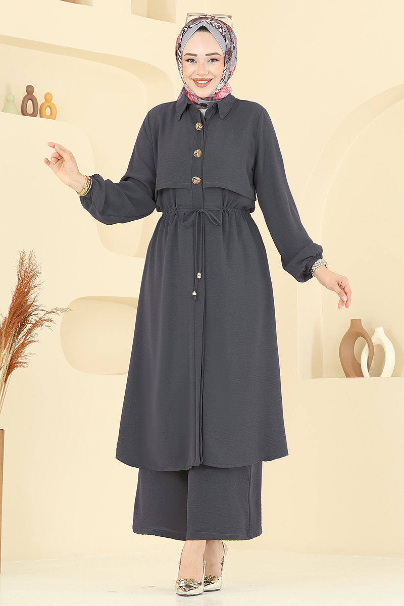 Elena Düğmeli Tesettür Takım Antrasit