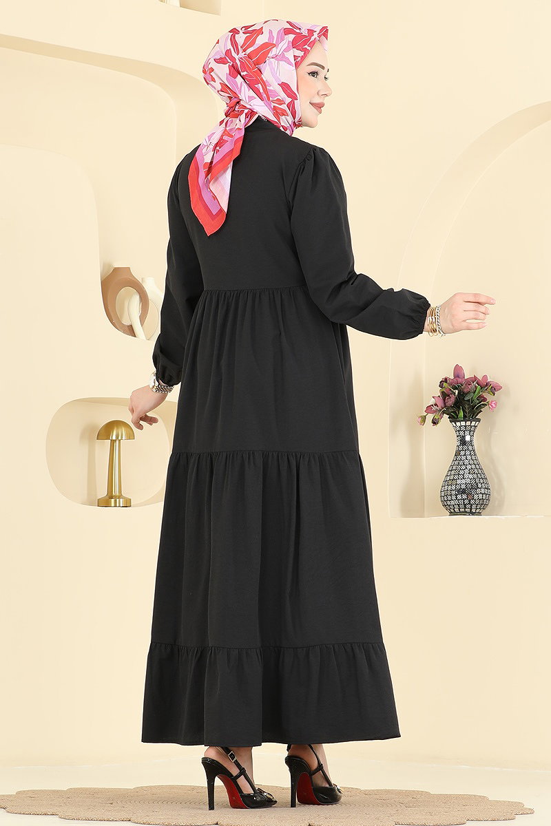 Eteği Büzgü Detaylı Elbise 3084KTR750 Siyah