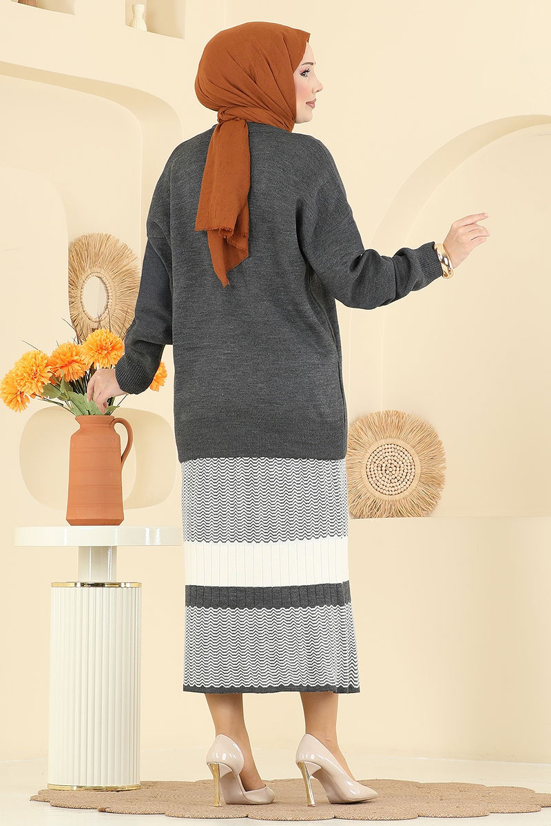 Eteği Desenli Triko Takım 2360KLB1050 Antrasit