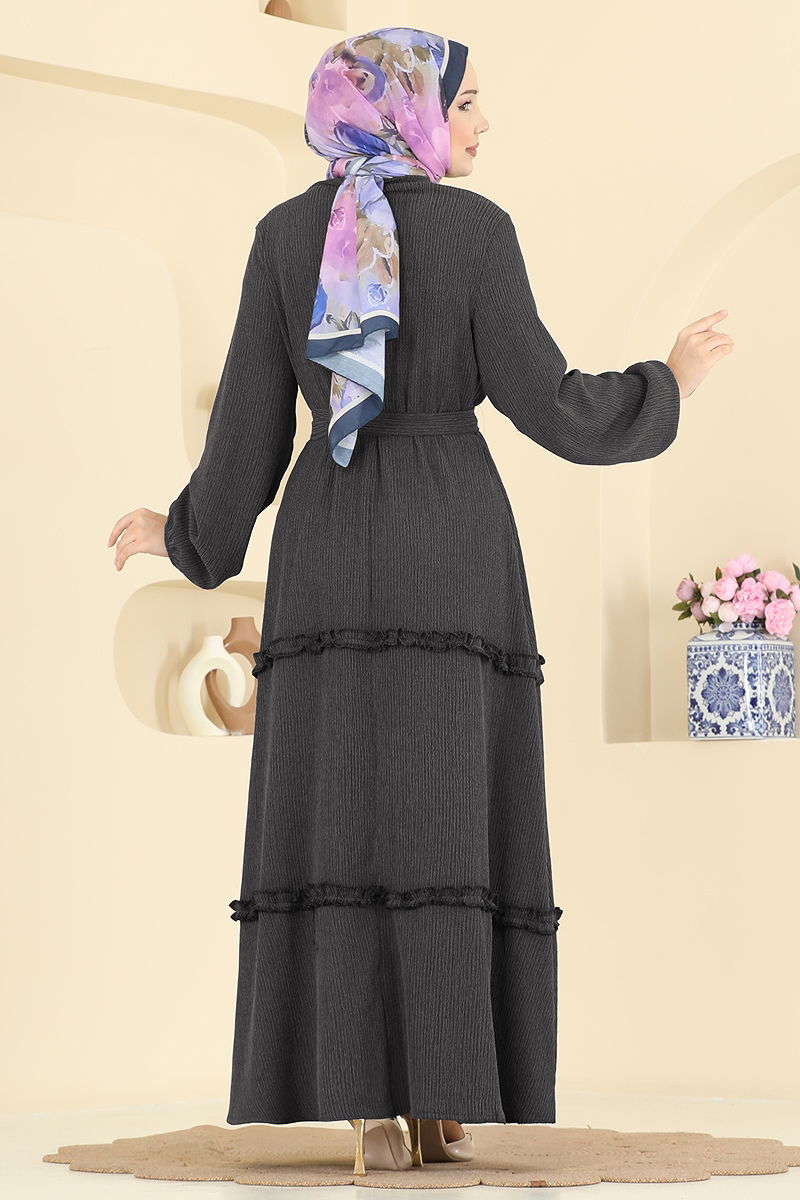 Eteği Fırfır Detaylı Elbise 3322BLU797 Siyah