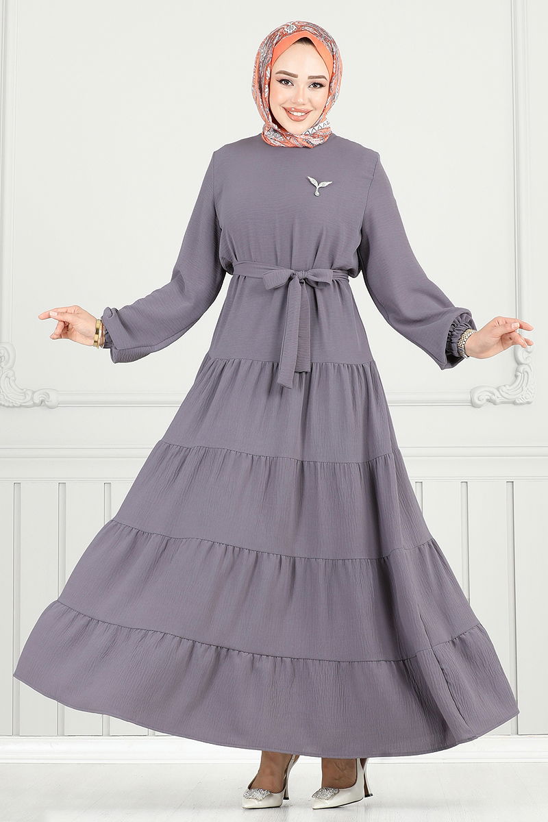 Eteği Katlı Aerobin Elbise, dört mevsim rahatlıkla kullanılabilir bir tesettür modelidir. Hassas yıkamaya uygun bu ürün, 30 derecede yıkanabilir özelliklere sahiptir. Aerobin kumaştan üretilmiş olan elbise, bisiklet yaka tasarımıyla dikkat çeker. Astarsız olan bu modelin sırt kısmında kullanılan düğme, pratik bir kullanım sunar. Manşetleri lastikli olan elbise, dahil edilen kemer ile farklı stil seçenekleri sunar. Kemer, dalgalanmayı önleyecek şekilde tasarlanmıştır ve kullanımı isteğe bağlıdır.