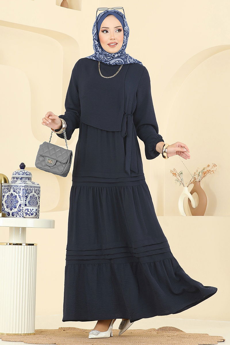 Eteği katlı ve zarif bir tasarıma sahip olan Aerobin Elbise, dört mevsim rahatlıkla kullanılabilir. Aerobin kumaşın sahip olduğu hafiflik ve nefes alabilirlik sayesinde gün boyu konfor sağlar. Model tesettür özellikli olup, bisiklet yakası ve manşet lastik detaylarıyla modern bir duruş sergiler. Astarsız yapısı ile hafif ve rahat bir kullanım sunar. Elbise, hassas yıkama programında 30 derecede yıkanabilir ve sırttan düğme ile kolayca kullanılabilir.