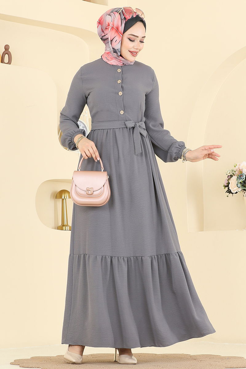 Eteği Katlı Aerobin Elbise Gri