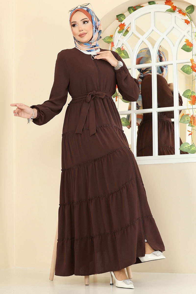 Eteği Katlı Aerobin Ferace Kahve