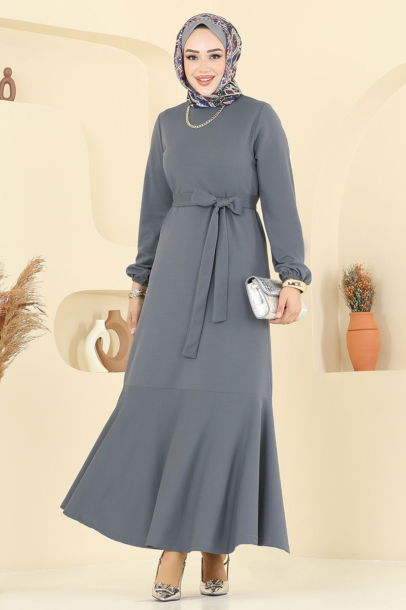 The Tiered Skirt Mira Dress is a modern modest wear piece that can be comfortably worn across all seasons. Recommended to be washed at 30 degrees on a gentle cycle, this dress is made from durable Mira fabric. Featuring a crew neck and a liner-free design, it offers comfort, while the standard elastic cuffs provide convenience. The dress includes a specially designed belt with stitched ends and an unstitched middle, enhancing its elegance while being optionally removable. Its classic and stylish look stands out in any setting.