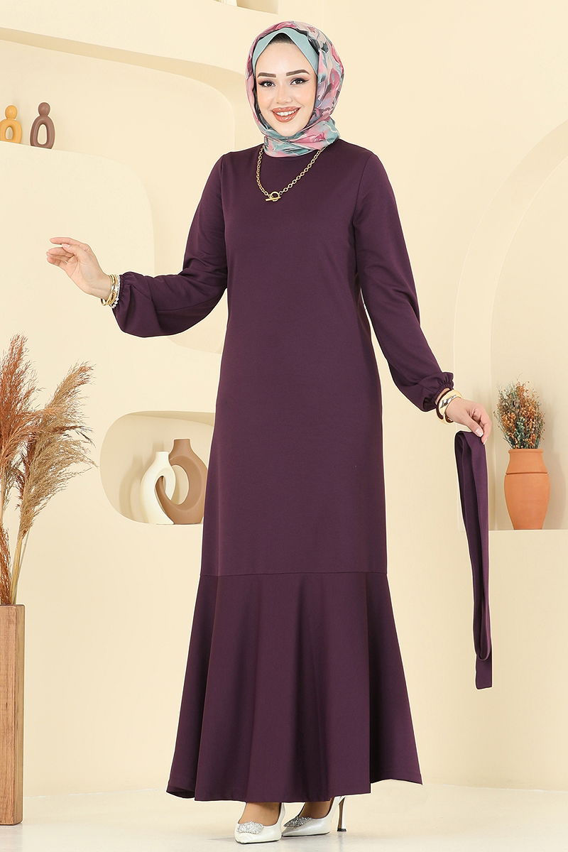 Eteği Katlı Mira Elbise 8133AB368 Mürdüm