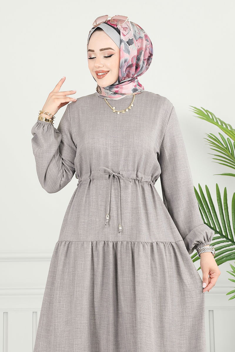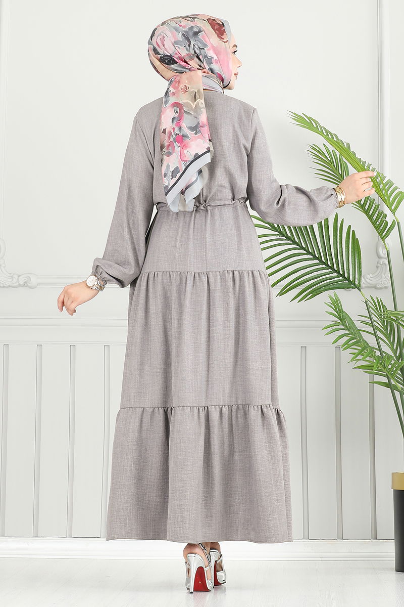 Eteği Katlı Sofia Elbise, tesettür için özel tasarlanmıştır. Dört mevsim boyunca rahatlıkla kullanabileceğiniz bu model, hassas yapıda 30 derecede yıkanabilir. Sofia keten kumaşı sayesinde uzun ömürlü ve şık bir görünüme sahiptir. Bisiklet yaka ve astarsız tasarımı ile modern bir dokunuş sunar. Sırttan düğmeli ve bel bağcıklı yapıya sahip olan elbise, manşet lastikli kolları ile konforu artırır. Modelin üzerindeki ürün 38 bedendir ve her ortamda şıklığınızı korumanızı sağlar.