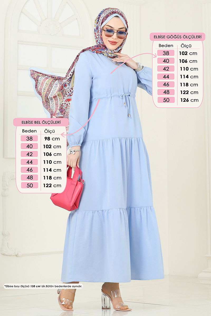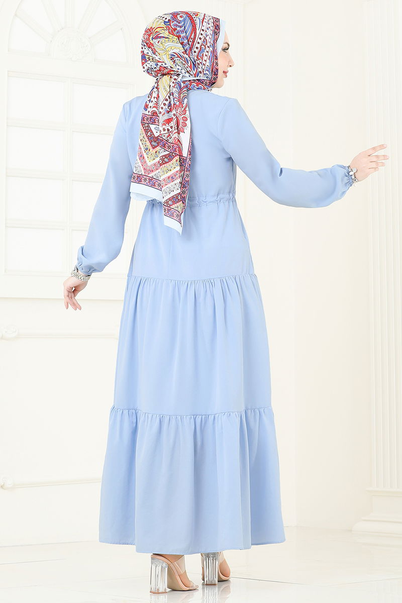 Eteği Katlı Terikoton Elbise Bebe Mavisi