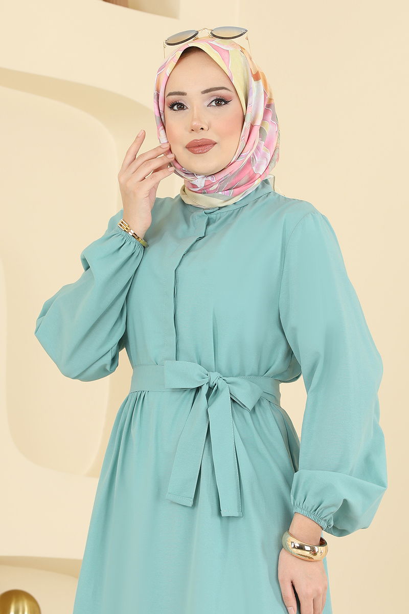 Eteği Katlı Terikoton Elbise 3075KTR750 Mint