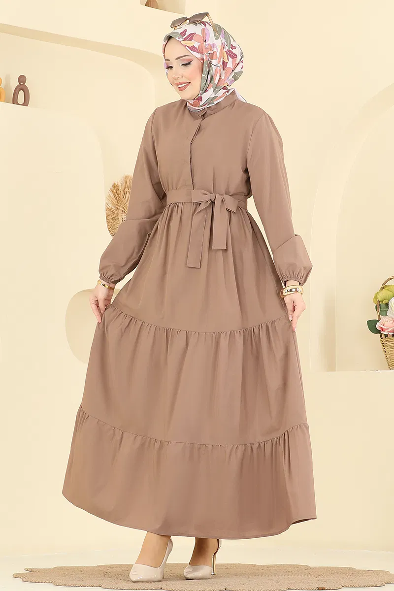Eteği Katlı Terikoton Elbise 3075KTR750 Vizyon