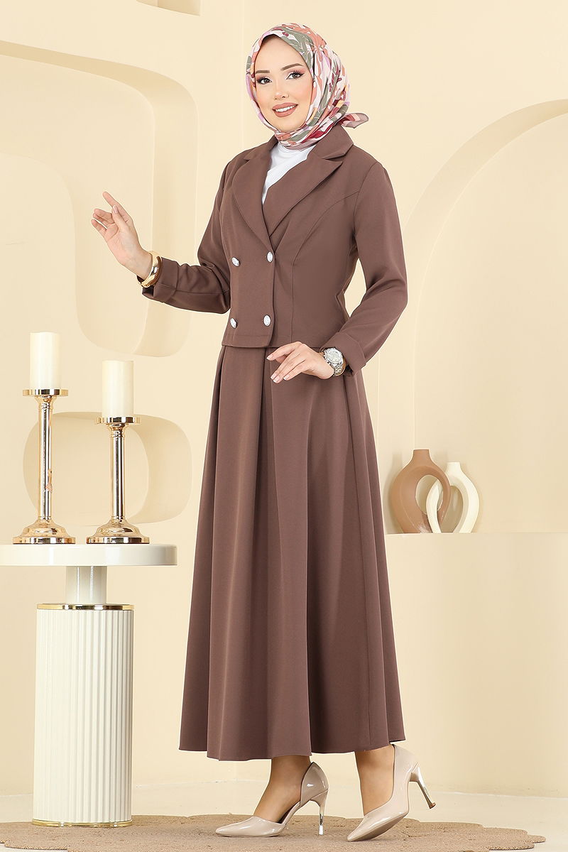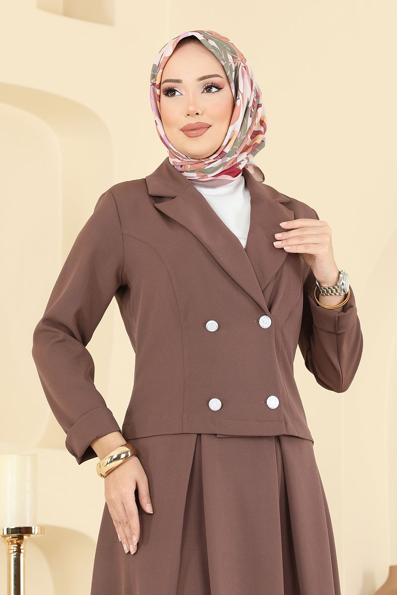 Eteği Piliseli Ceketli Takım 2775SL432 Kahve