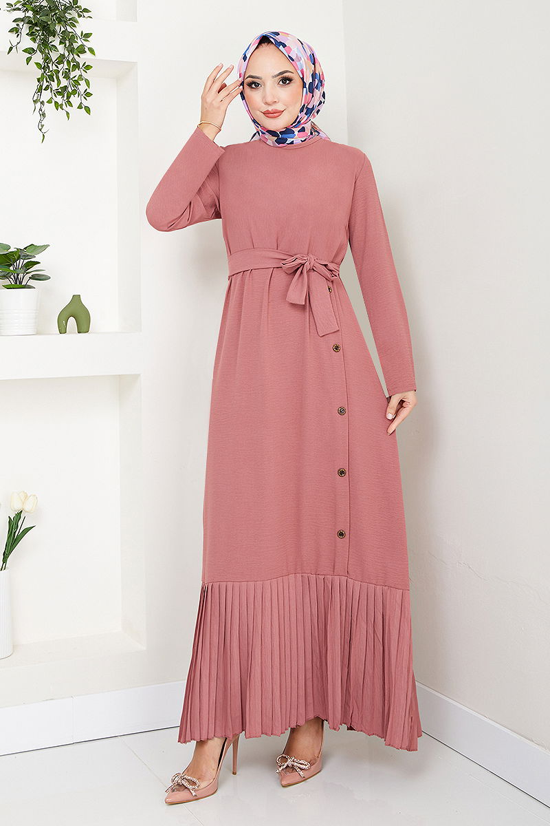 Eteği Piliseli Elbise 2398HBS932-M Gül Kurusu