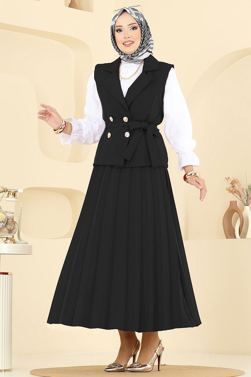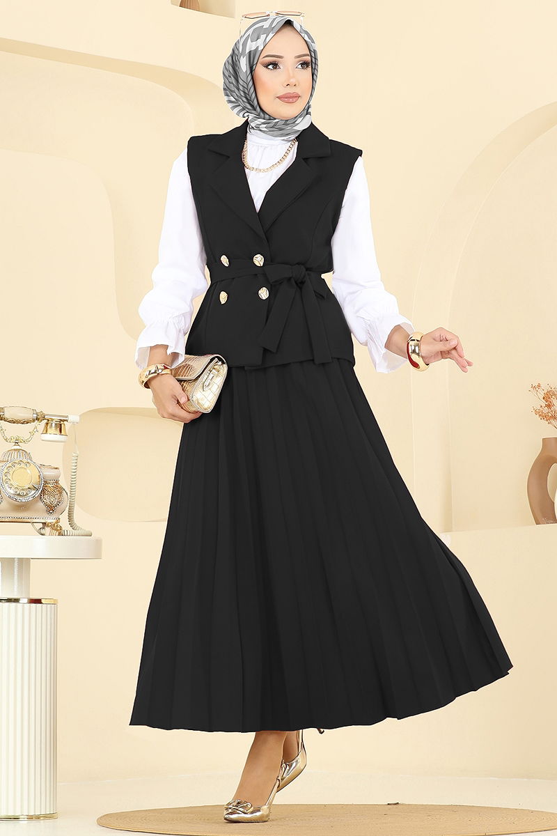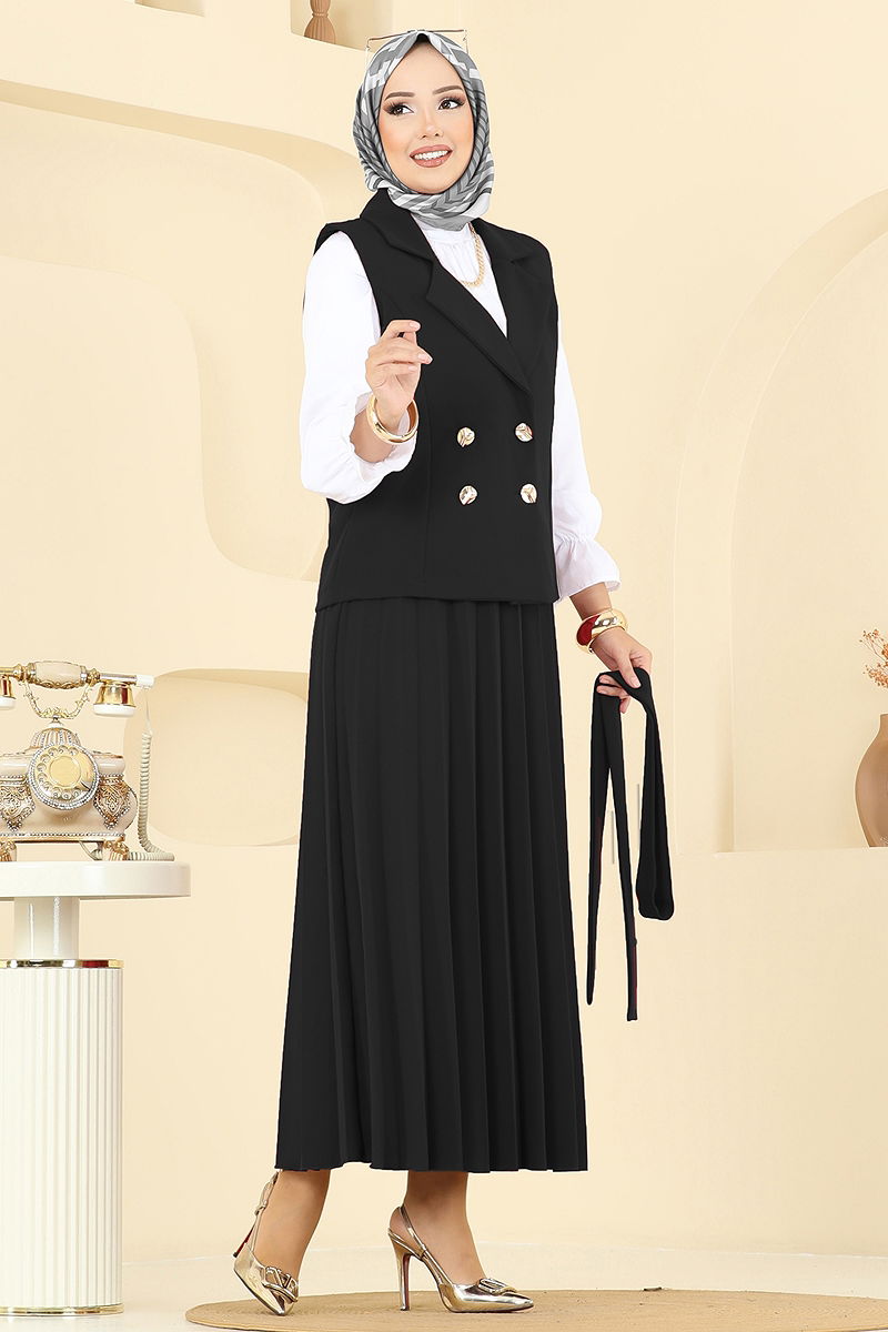 Eteği Piliseli Üçlü Takım Siyah