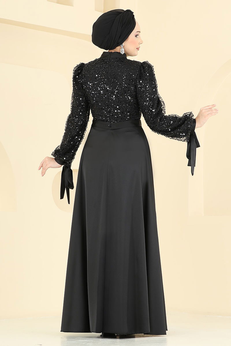 Eteği Saten Pullu Abiye 5748EDF311 Siyah