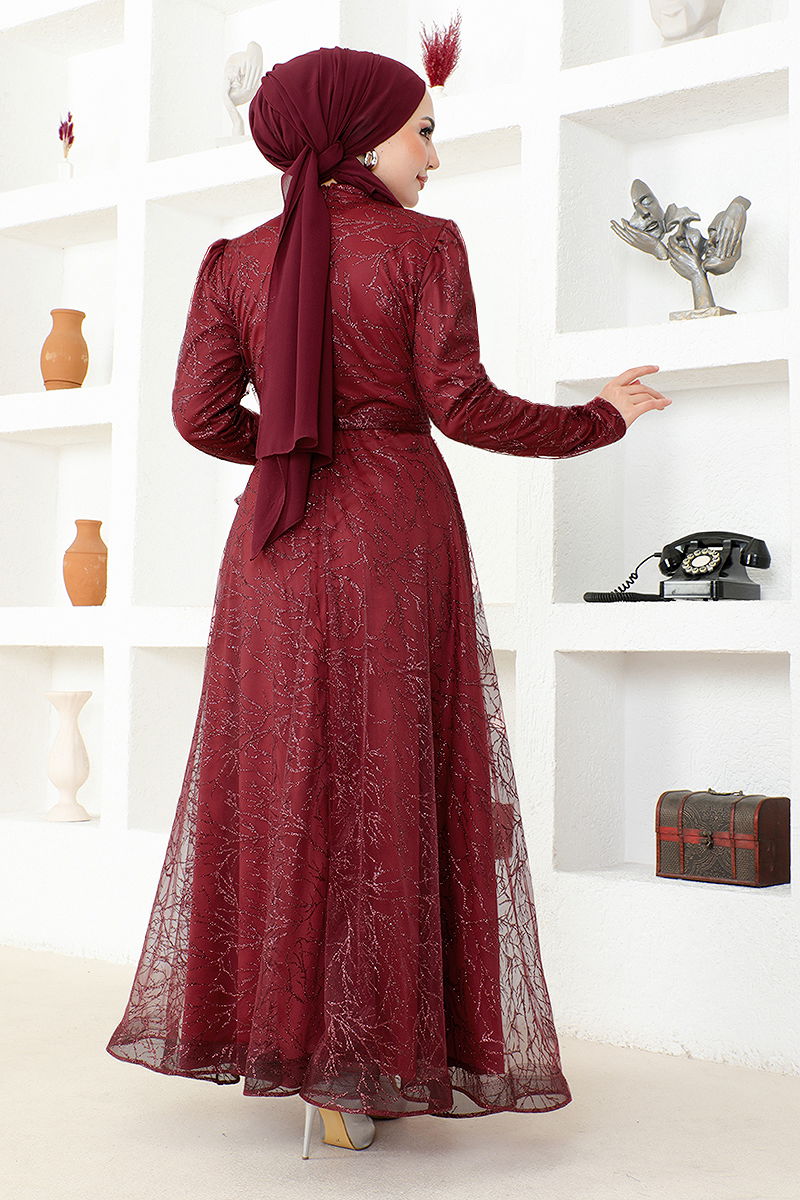 Eteği Volanlı Kemerli Abiye END5592 Bordo