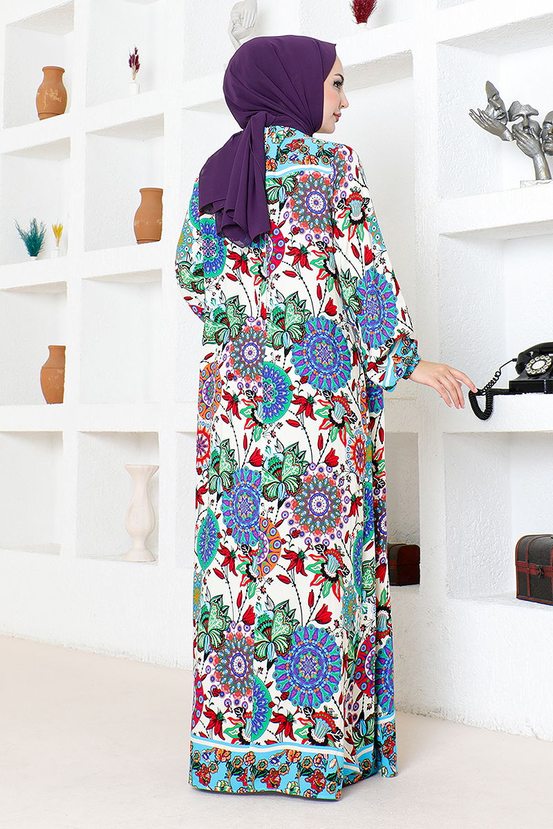 فستان فيسكوز منقوش بنقوش عرقية هو خيار مثالي للباحثات عن الأناقة والراحة في فصلي الربيع والصيف للسيدات المحجبات. هذا الفستان القابل للغسل اليدوي مصنوع من قماش فيسكوز من الدرجة الأولى وغير مبطن. الفستان مزود بسحّاب للإغلاق من الخلف وياقة دراجة، وأساور مطاطية ومتوفر بمجموعة كبيرة من الألوان. (المنتج على الموديل مقاس 38).
