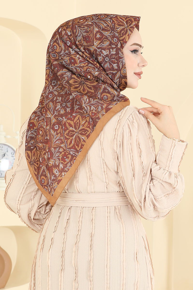Etnik Desen Soft Eşarp Serisi Koyu Hardal