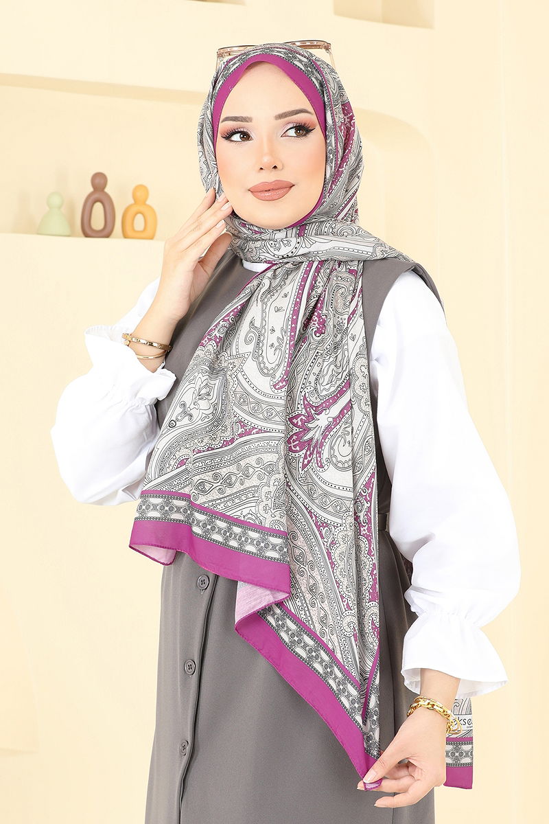 Etnik Desenli Şal Serisi 130IPK758 Fuşya&Gri
