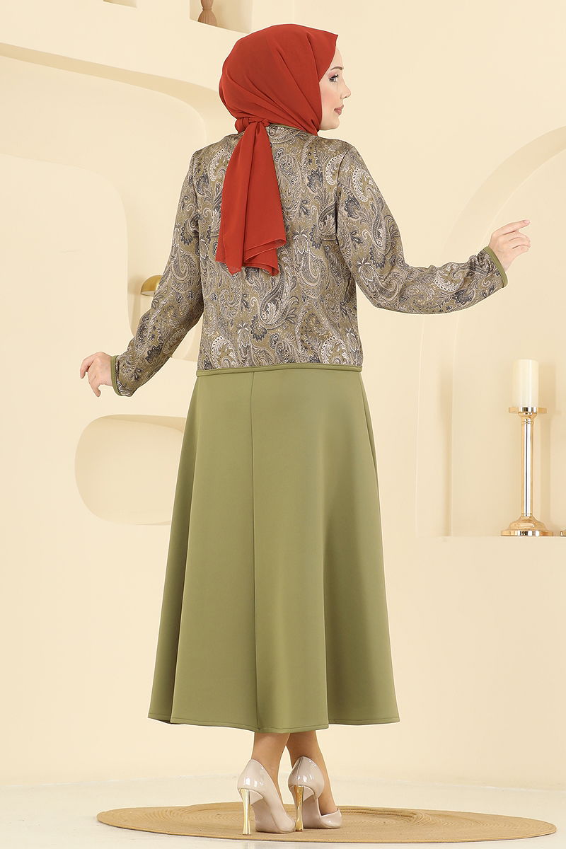 Etnik Desenli Scuba Takım, tesettür modasına özgü bir şıklık sunar. Dört mevsim boyunca rahatlıkla kullanabileceğiniz bu takım, hassas yıkama modunda 30 derecede yıkanabilir özelliklere sahiptir. Scuba kumaşın verdiği konfor ve esneklikle tasarlanmıştır. Bisiklet yaka ve astarsız yapısı, modern bir görünüm kazandırırken, ön kısımda bulunan düğmeler pratik bir kullanım sunar. Etek belindeki lastik ise hem rahatlık hem de şıklığı bir arada sunar. Model M beden üzerinde gösterilmektedir.