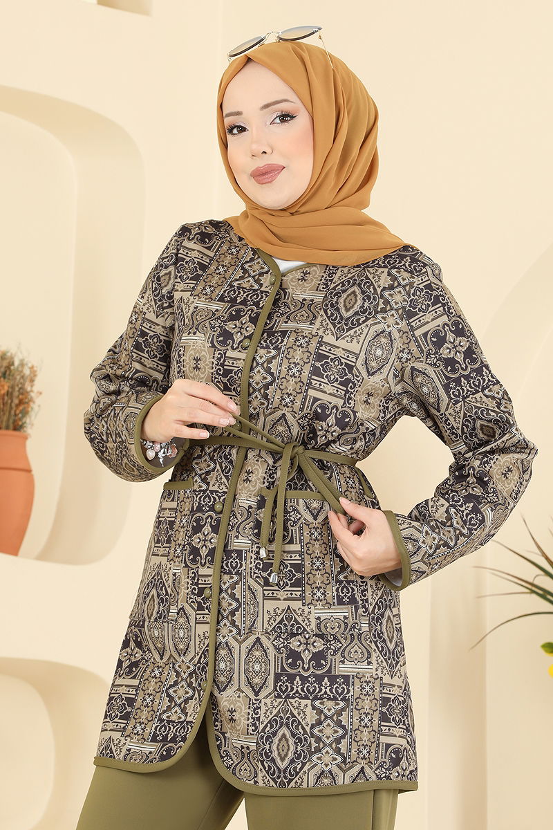 Etnik Desenli Scuba Takım sizlere dört mevsim rahatlık ve şıklık sunar. Hassas yıkamayla 30 derecede yıkanabilen bu tesettür kombin, önden düğmeli ve astarsız yapısıyla kullanım kolaylığı sağlar. M beden olarak sunulan bu ürün, bağcık detayları ile zenginleştirilmiştir; bağcık isteğe bağlı kullanılabilir. Pantolonun lastikli beli sayesinde gün boyu konfor sunar. Hem kap hem de pantolon olarak tasarlanmıştır, bu sayede rahat ve şık bir görünüm elde edersiniz.