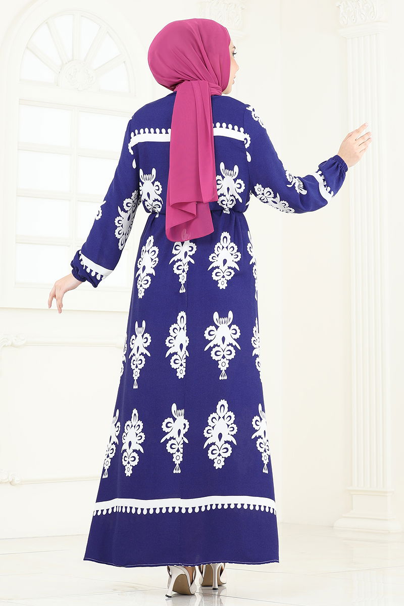 Bu etnik desenli viskon elbise, tesettür modeli ile dört mevsim rahatlıkla kullanılabilir. Elde yıkamaya uygun olan bu ürün, viskon kumaştan üretilmiştir ve yarım hakim yaka tasarıma sahiptir. Astarsız olan elbise, sırt kısmından fermuarlıdır ve manşetleri lastiklidir. Ürüne dahil olan kemer, isteğe bağlı kullanılmayabilir; uçları dikilmiş orta kısmı dikişsiz bir yapıya sahiptir. Şık ve fonksiyonel tasarımı ile dikkat çeken bu elbise, herhangi bir mevsimde şıklığınızı tamamlayacak.