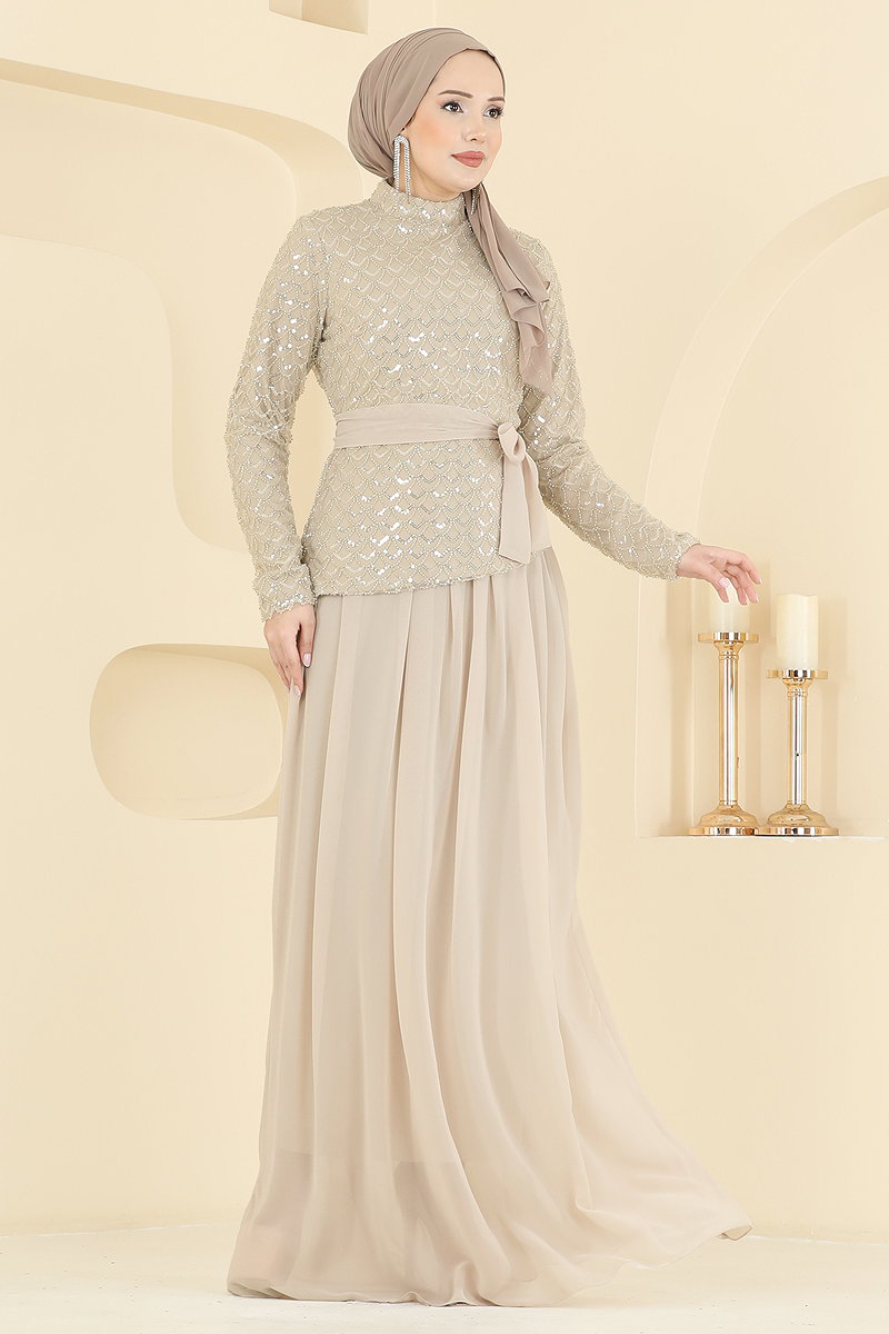 يوجد حزام يمكن استخدامه من الأمام. المنتج لديه ياقة مستقيم. إنها مبطّنة، البطانة مرنة.. المنتج به سحاب في جزء من الخلف. تفاصيل الخرز مخيطة الحزام متضمن، ،يمكن استخدامها حسب الرغبة قد يكون هناك اختلاف في الدرجة اللونية في المنتج بسبب التقاط الصور الفوتوغرافية.