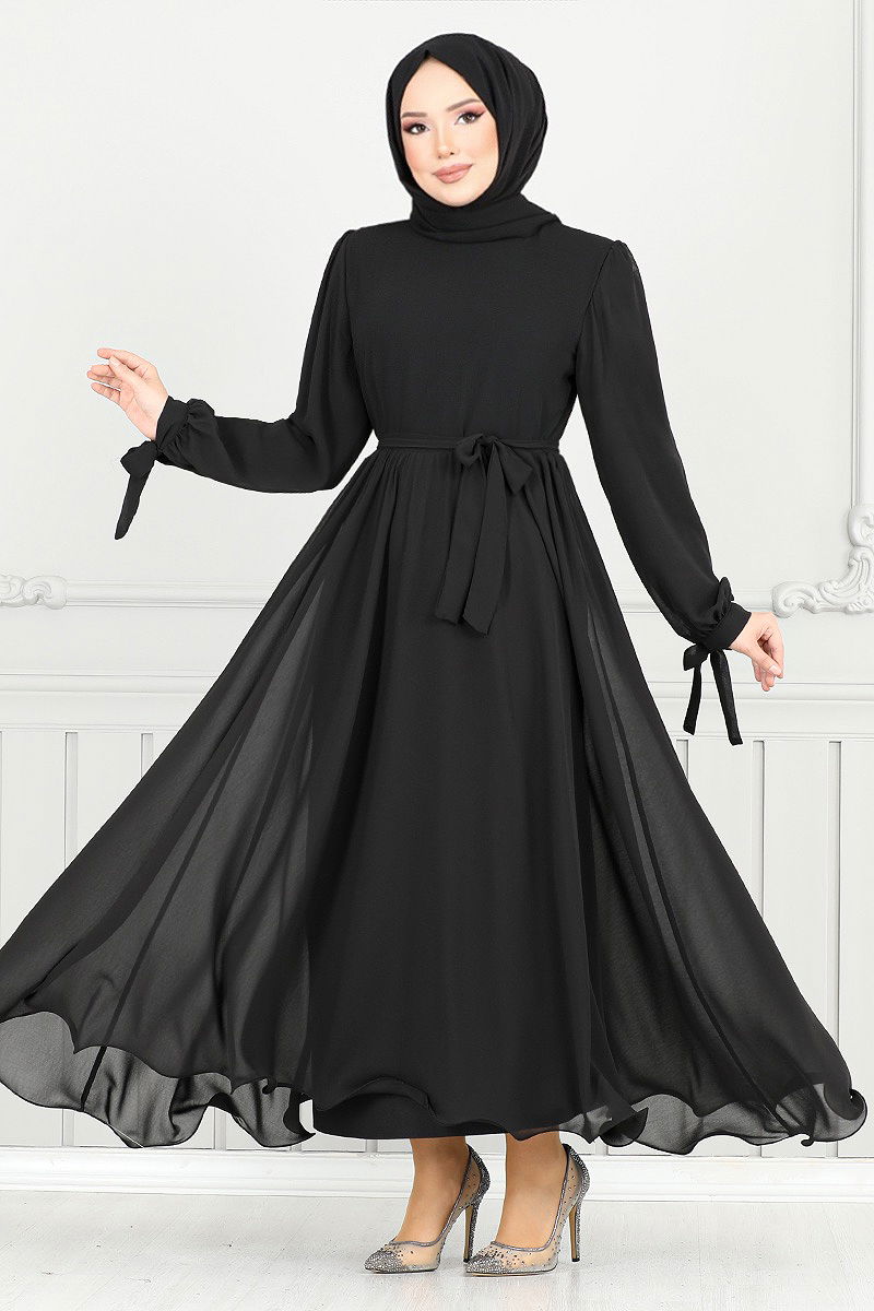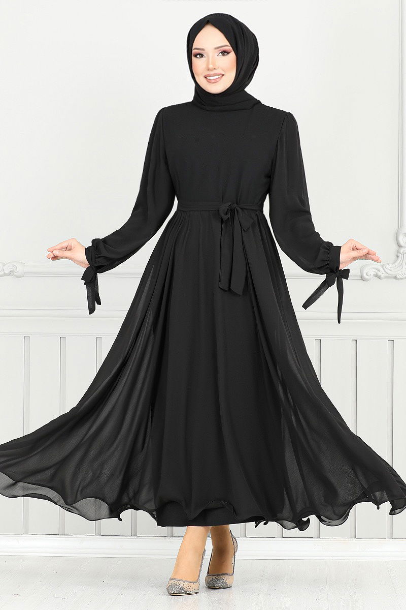 Elegant and chic, the Lace-Up Cuff Evening Dress is specially designed for women who prefer modest attire. Suitable for all seasons, this dress should only be dry cleaned. Made from chiffon fabric, it offers comfort and elegance with its bike-neck design and lined structure. The back-zippered design facilitates easy wearing, while the stitched waist belt adds a touch of grace. The belt is intricately designed to prevent waviness and can be removed if desired. The lace-up cuffs make this dress perfect for those seeking sophisticated elegance.