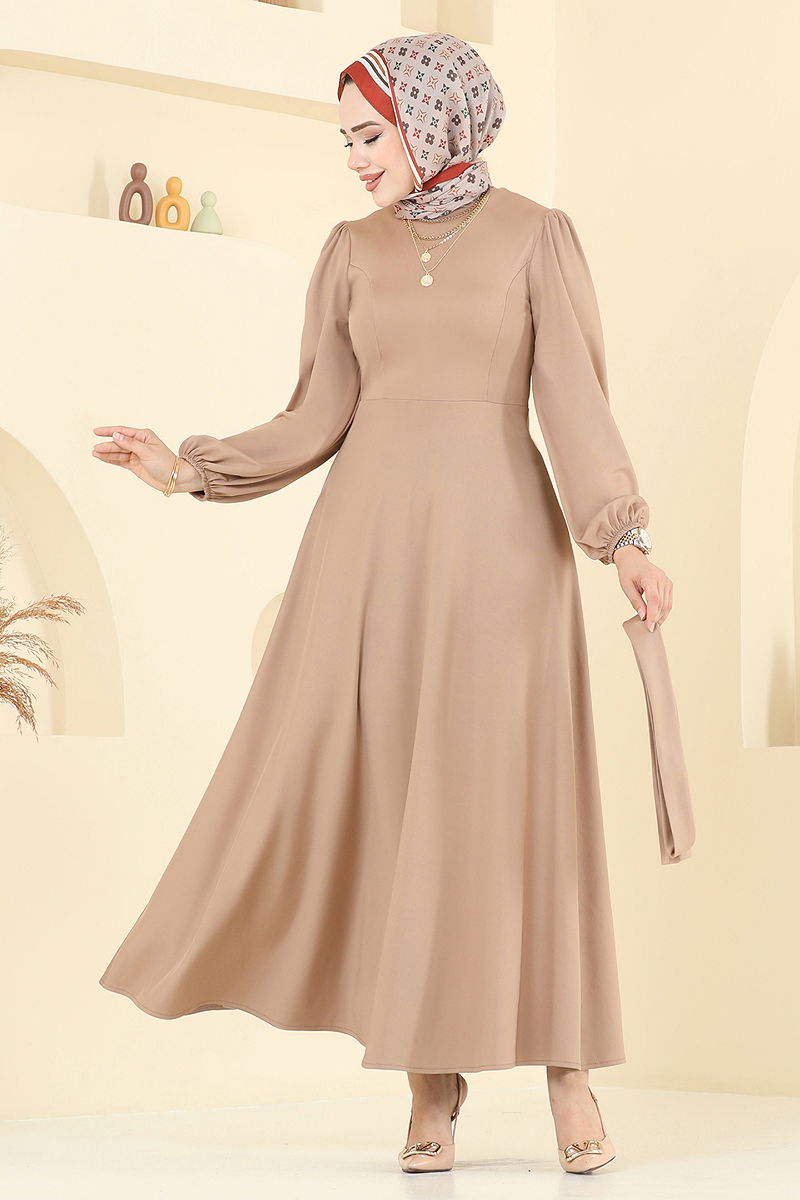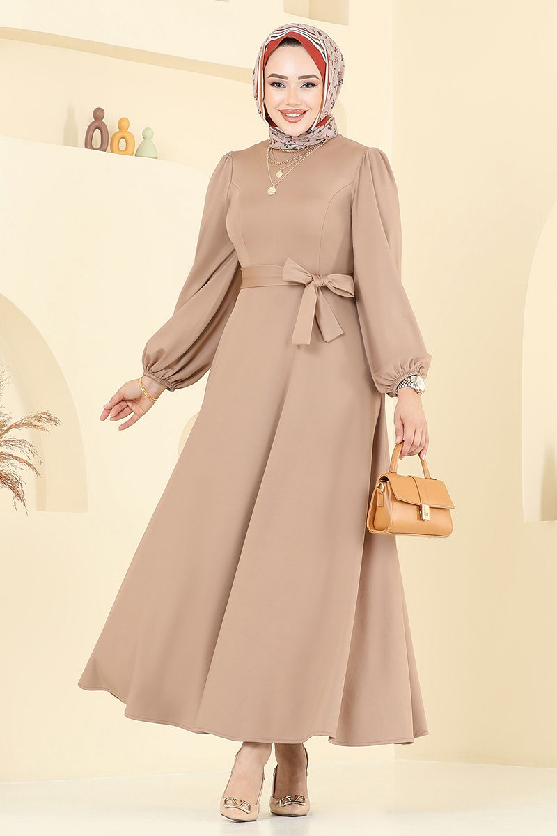 المنتج لديه ياقة دائرية. غير مبطنة. المنتج به سحاب في جزء من الخلف. المنتج يحتوي على حزام خصر مُخاط. الحزام متضمن، ،يمكن استخدامها حسب الرغبة السوار مطاطي. قد يكون هناك اختلاف في الدرجة اللونية في المنتج بسبب التقاط الصور الفوتوغرافية.