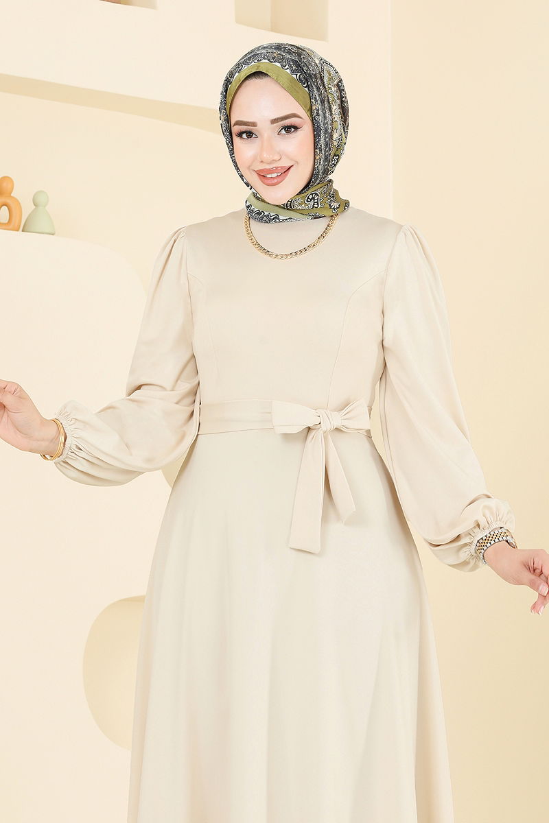 المنتج لديه ياقة دائرية. غير مبطنة. المنتج به سحاب في جزء من الخلف. المنتج يحتوي على حزام خصر مُخاط. الحزام متضمن، ،يمكن استخدامها حسب الرغبة السوار مطاطي. قد يكون هناك اختلاف في الدرجة اللونية في المنتج بسبب التقاط الصور الفوتوغرافية.