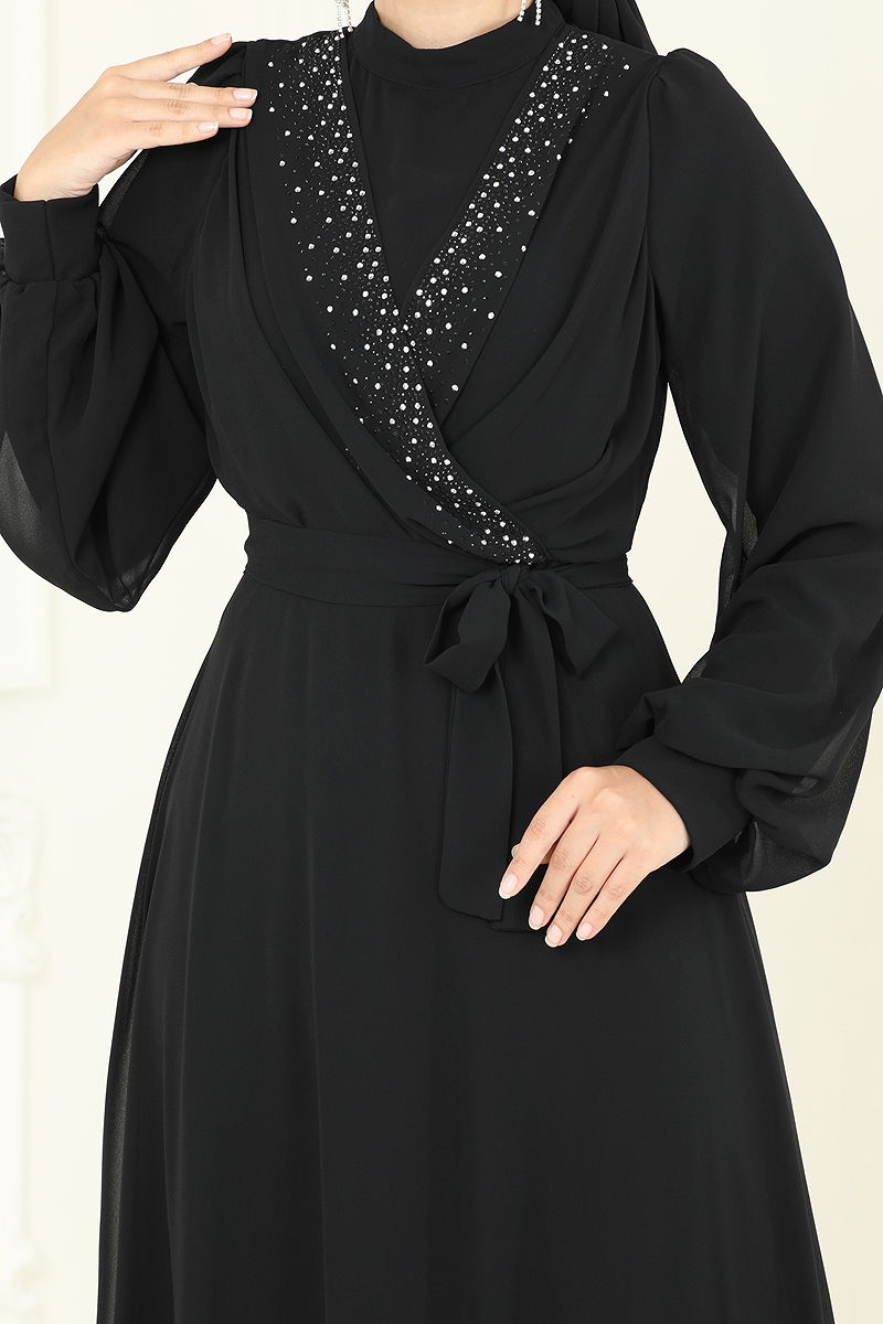 يوجد زر يمكن استخدامه من الخلف. المنتج لديه ياقة نصف بيضوية. مبطنة. المنتج به سحاب في جزء من الخلف. يتم لصق الحجارة. الحزام متضمن، ،يمكن استخدامها حسب الرغبة قد يكون هناك اختلاف في الدرجة اللونية في المنتج بسبب التقاط الصور الفوتوغرافية.