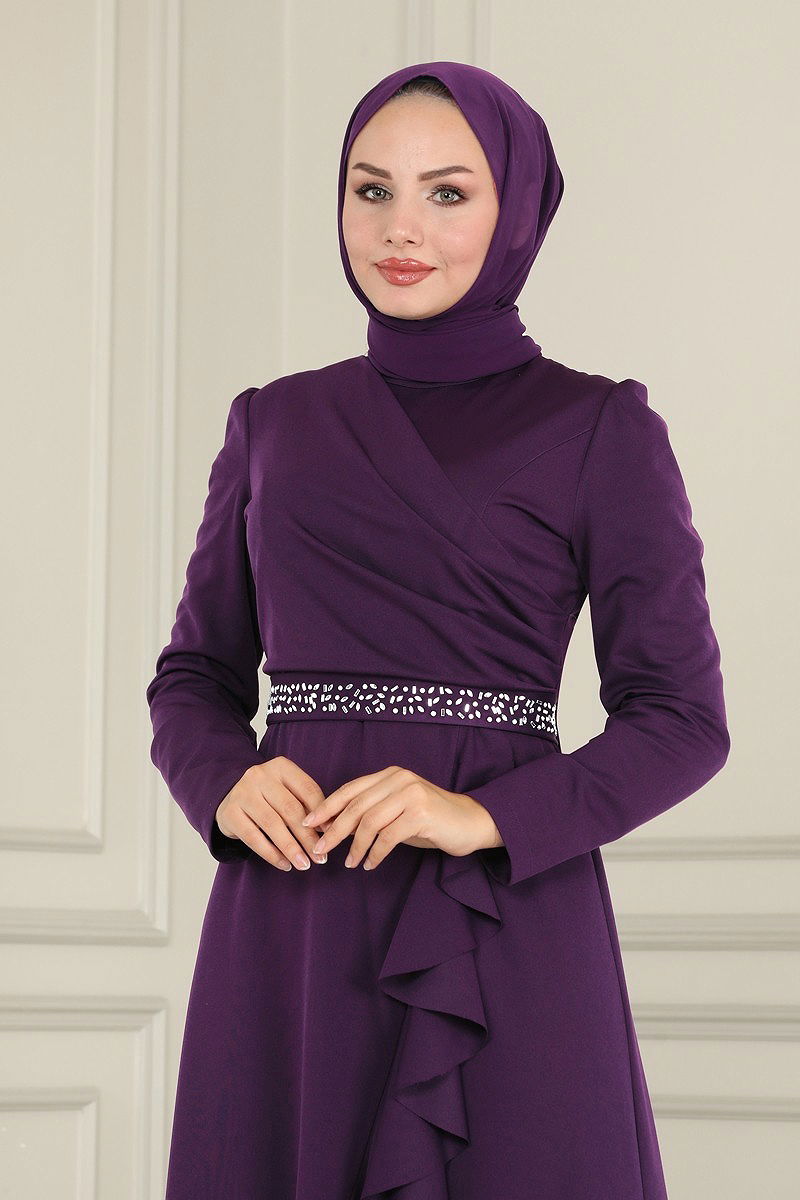 The Bead-Waist Gown is a modest model that can be worn comfortably across all seasons. This dress, which stands out with its classic and elegant appearance, will make you dazzle on your special days. It is made from Knit Dabıl fabric and is unlined. It offers practical use with its bike neck design and zipper closure on the back. This dress, which should only be dry cleaned, is embellished with bead details. (The product on the model is a size 38. Height: 160 cm, Chest: 86 cm, Waist: 68 cm, Hip: 95 cm, Weight: 55 kg.)