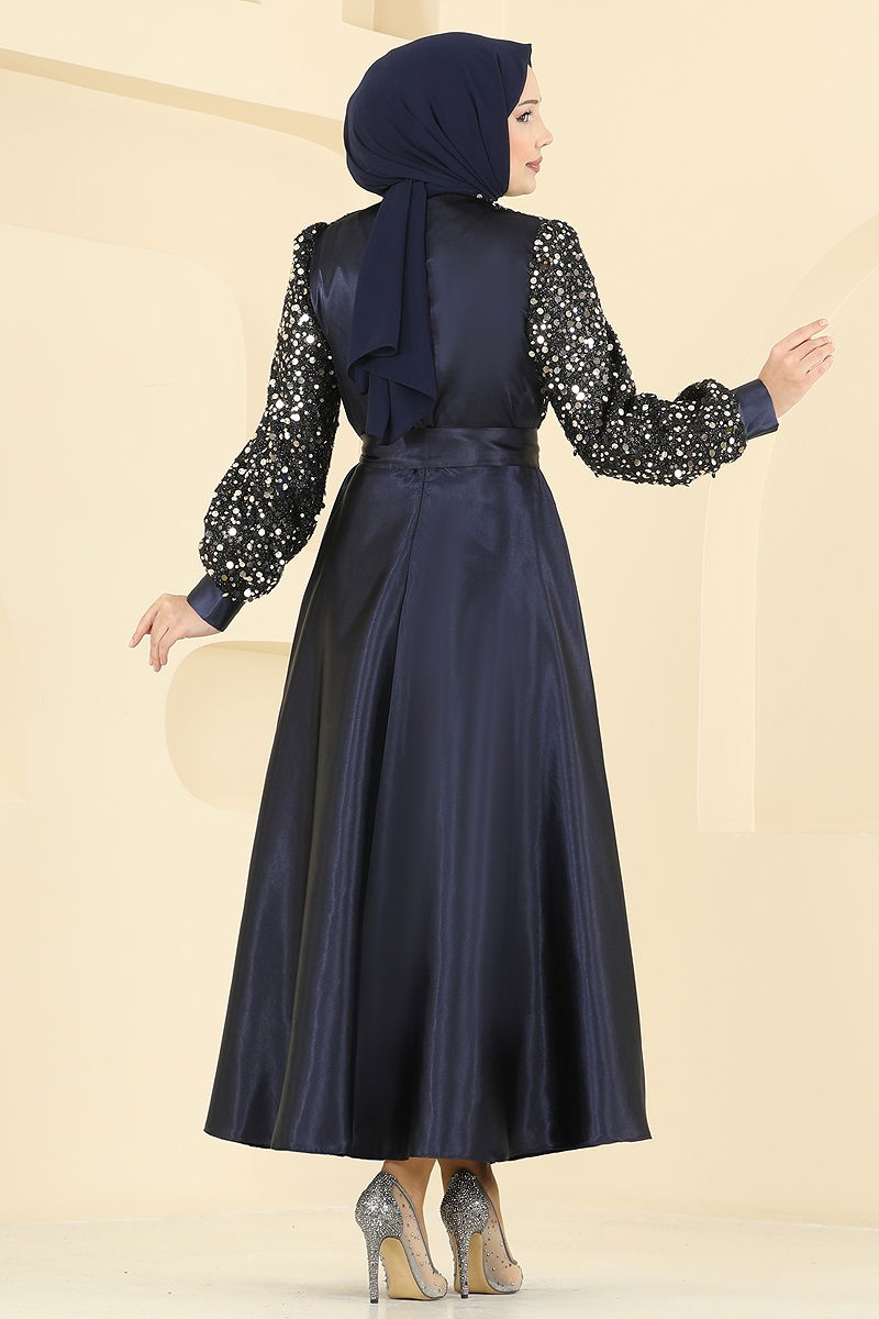 فستان سهرة كحلي وذهبي 2537ASMK1074