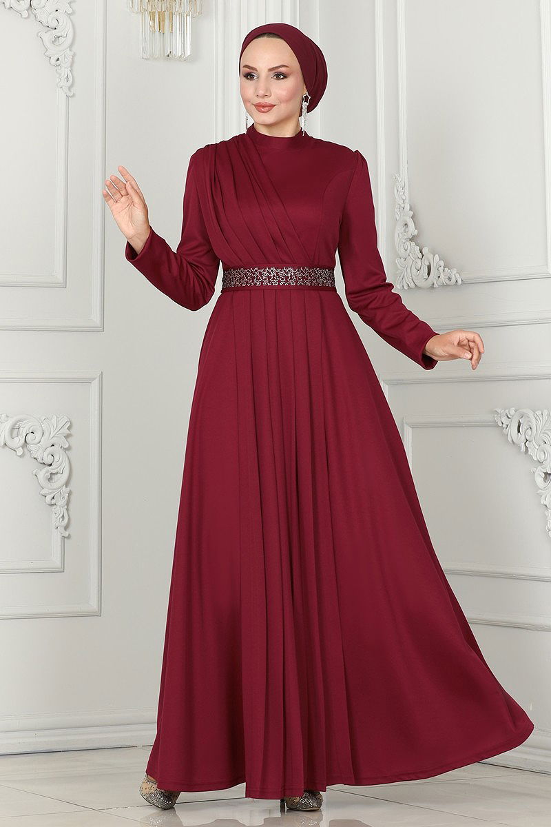 Product Feature : It is a new season hijab fashion product. The product has a Cycling collar. Unlined. The product has a zipper at the From the back part. Belt included, optional not available. The stones are glued. There may be a tonal difference in the product due to concept photo shoots.